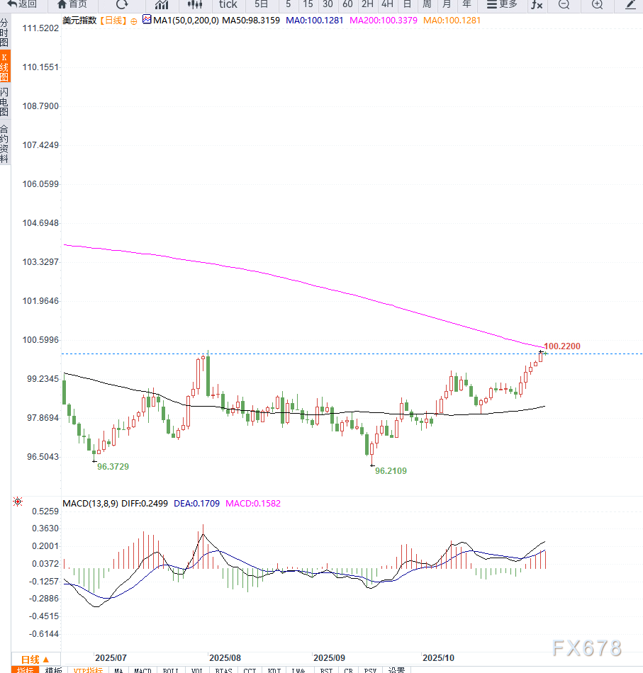 美元指数短期呈现“财政停摆压制与美联储政策支撑并存”的格局。美国政府停摆延长增加经济不确定性,对美元形成抛压;但美联储年底降息不确定性及即将公布的经济数据为美元提供底部支撑。